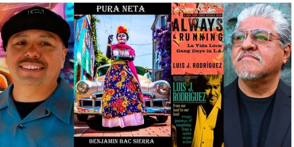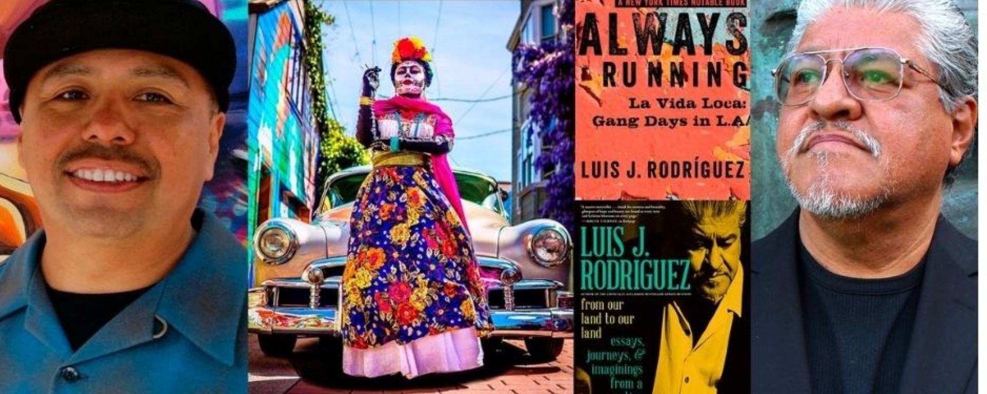 Unprecedented amor: a San Fran Northern Califas Homey author professor discussing literature, poetry, vida loca, and Pura Neta with a respected award-winning So Cal Xicanx writer, activist, and Loved One, Luis Rodriguez. Imagination and wisdom are beyond borders, make-believe walls that keep us separated and distracted from what is really going on. More than ever, now is the time for gente to unite for our universal empowerment.
