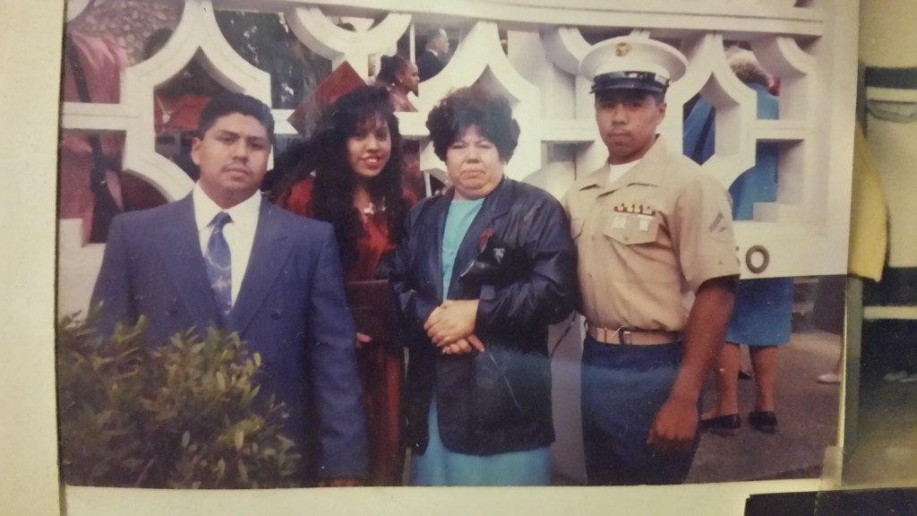 I wanted to make my brother proud. I wanted to keep making him proud. Since our father had died when I was nine, he had been like my father. He would tell stories of my Indio father, how he would bounce around the Army Street projects playing records on his portable record player. Any court yard would be his party. My brother took on the traits of Eduardo, our father, and transformed those traits to the energy he used on the Cholo Mission Streets.