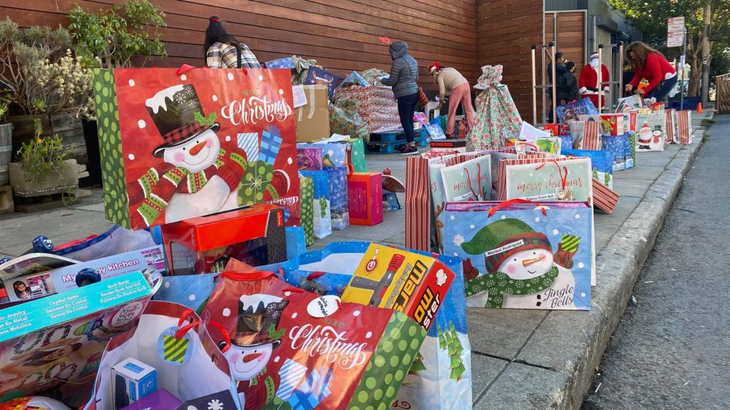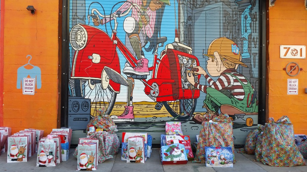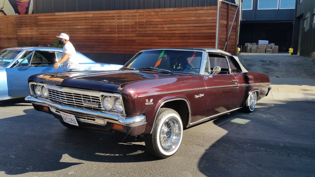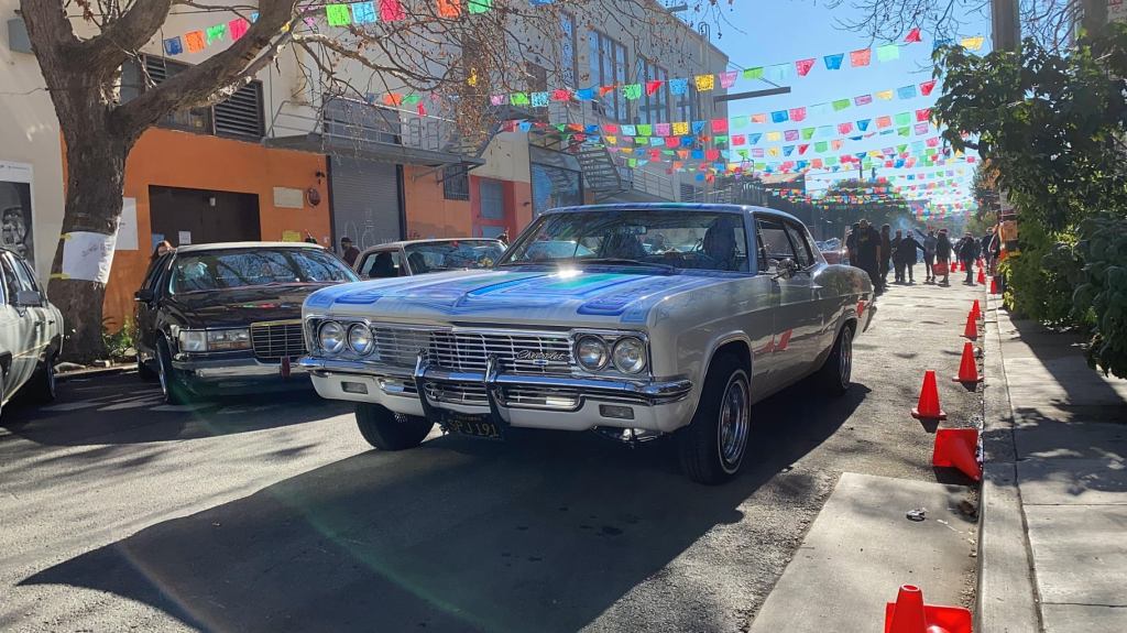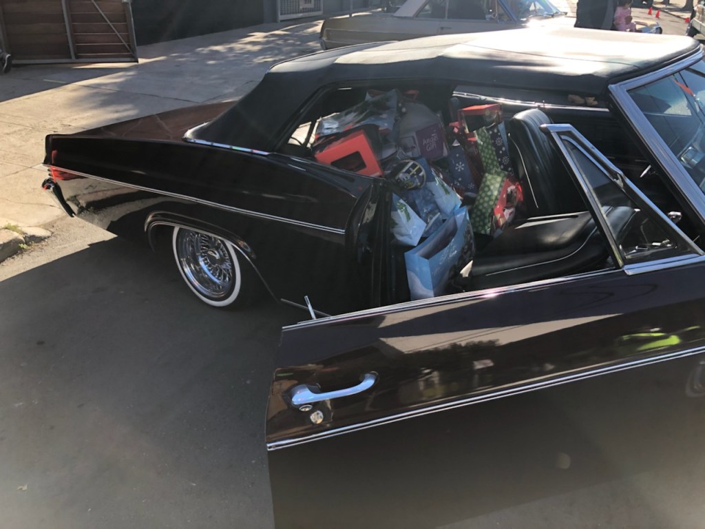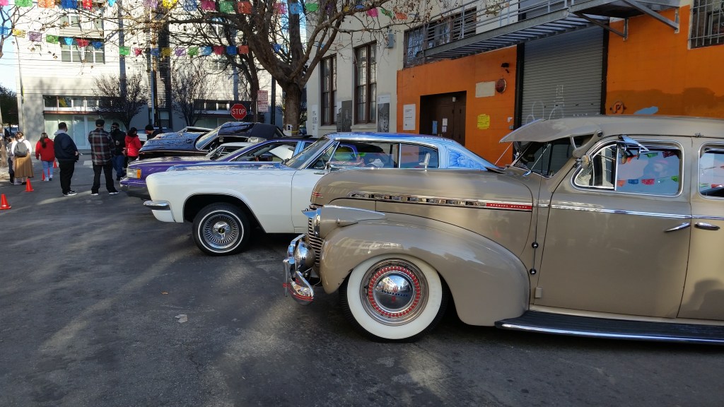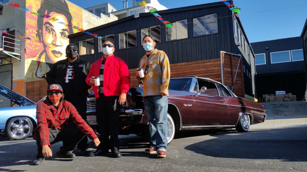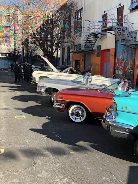 On Sunday, December 20, 2020, Santa Clause came in reindeers of gold, red, blue, metal-flaked lowrider Impalas, Monte Carlos, Cuttys, and Cadillacs with custom colorful murals and lots of love. Organized and led by many, including Roberto Hernandez, with the San Fran Mission Food Hub as headquarters, the Homeboy and Homegirl elves got all the Christmas presents ready for the beautiful familias and children in need.