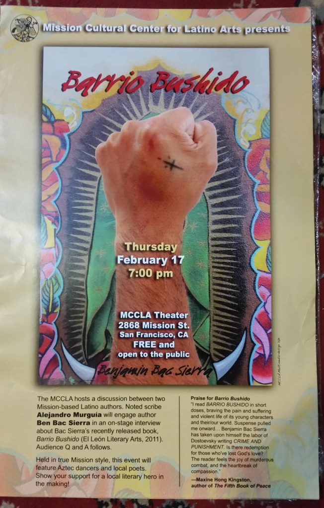 Today, February 17, marks ten years, a full decade, since the rainy evening sold-out packed premiere of Barrio Bushido, my first novel, at San Fran’s Mission Cultural Center con danzantes, lowriders, y todo!
