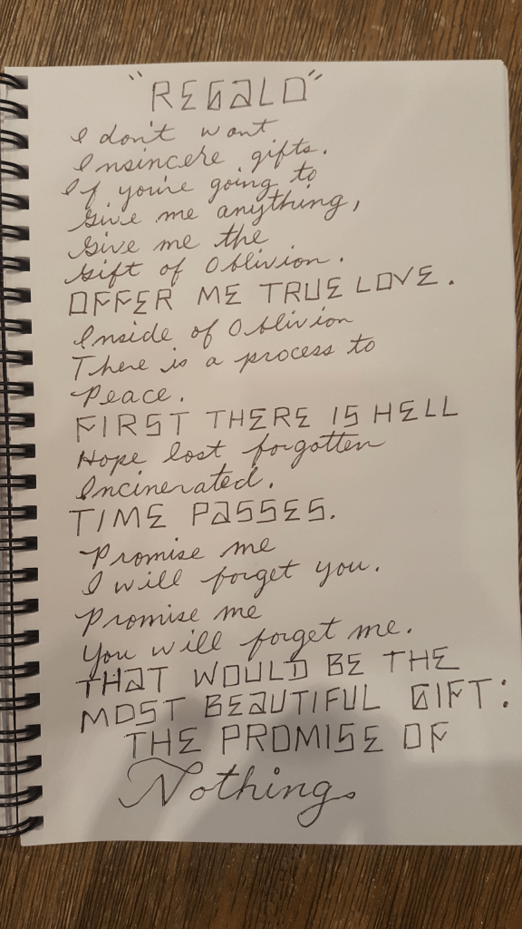 Five days passed. I wrote a poem called “Regalo” that was inspired by everyone’s spirit that day, especially the spirit of all those who have gone before us.