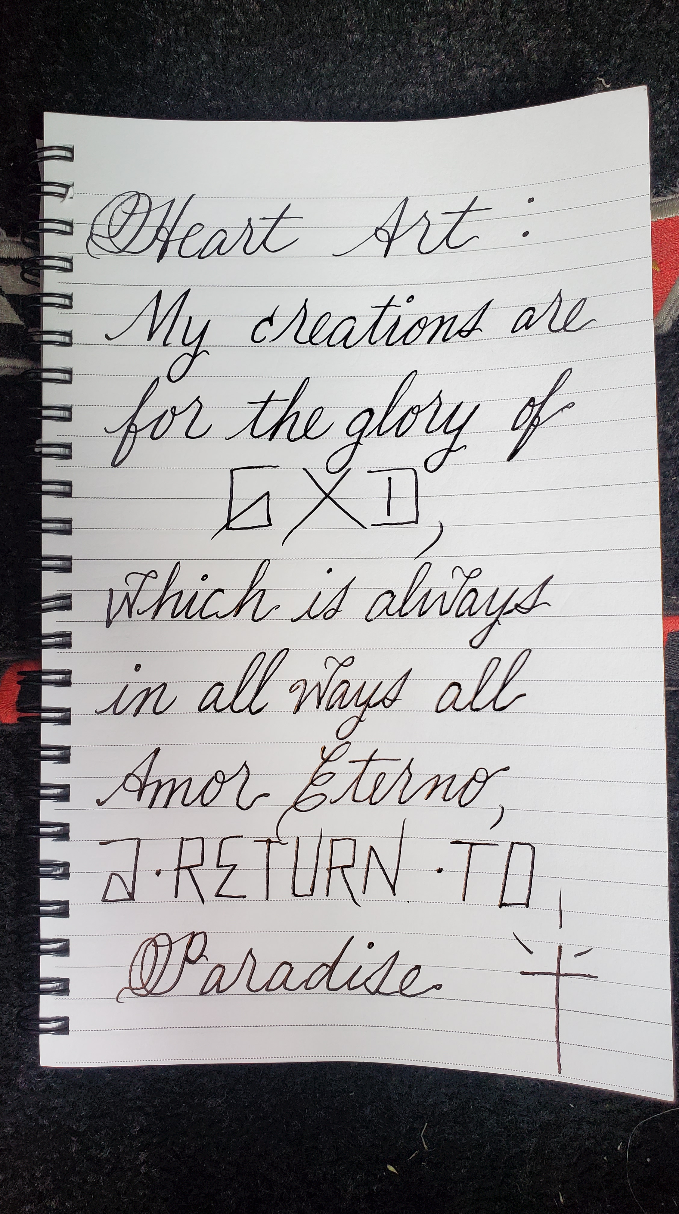 My creations are for the glory of God, which is always in all ways all Amor Eterno.