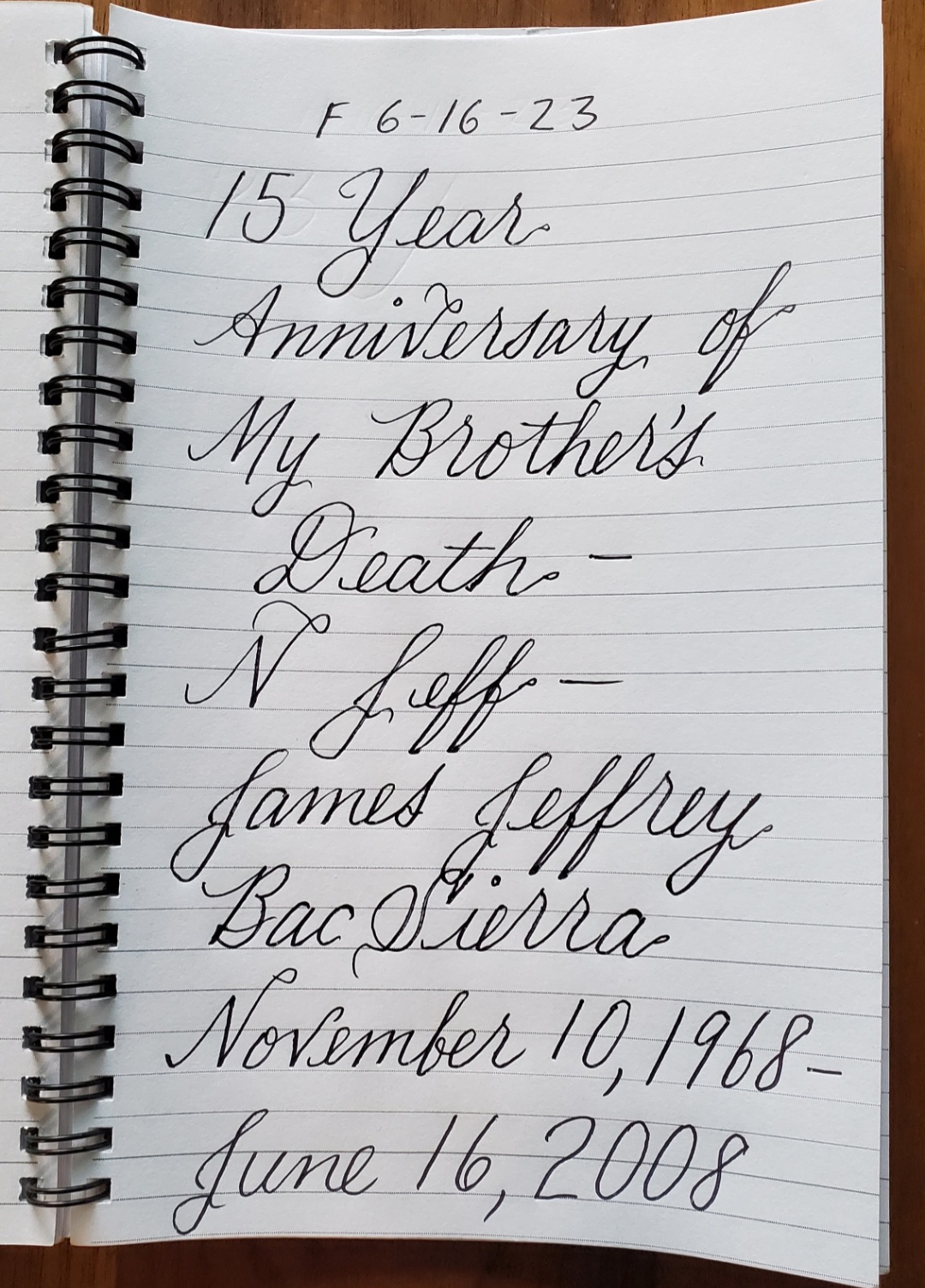 15 years, a quinceanera of your death, my blood Brother, James Jeffrey N Jeff Bac Sierra, Nov. 10, 1968 to June 16, 2008.