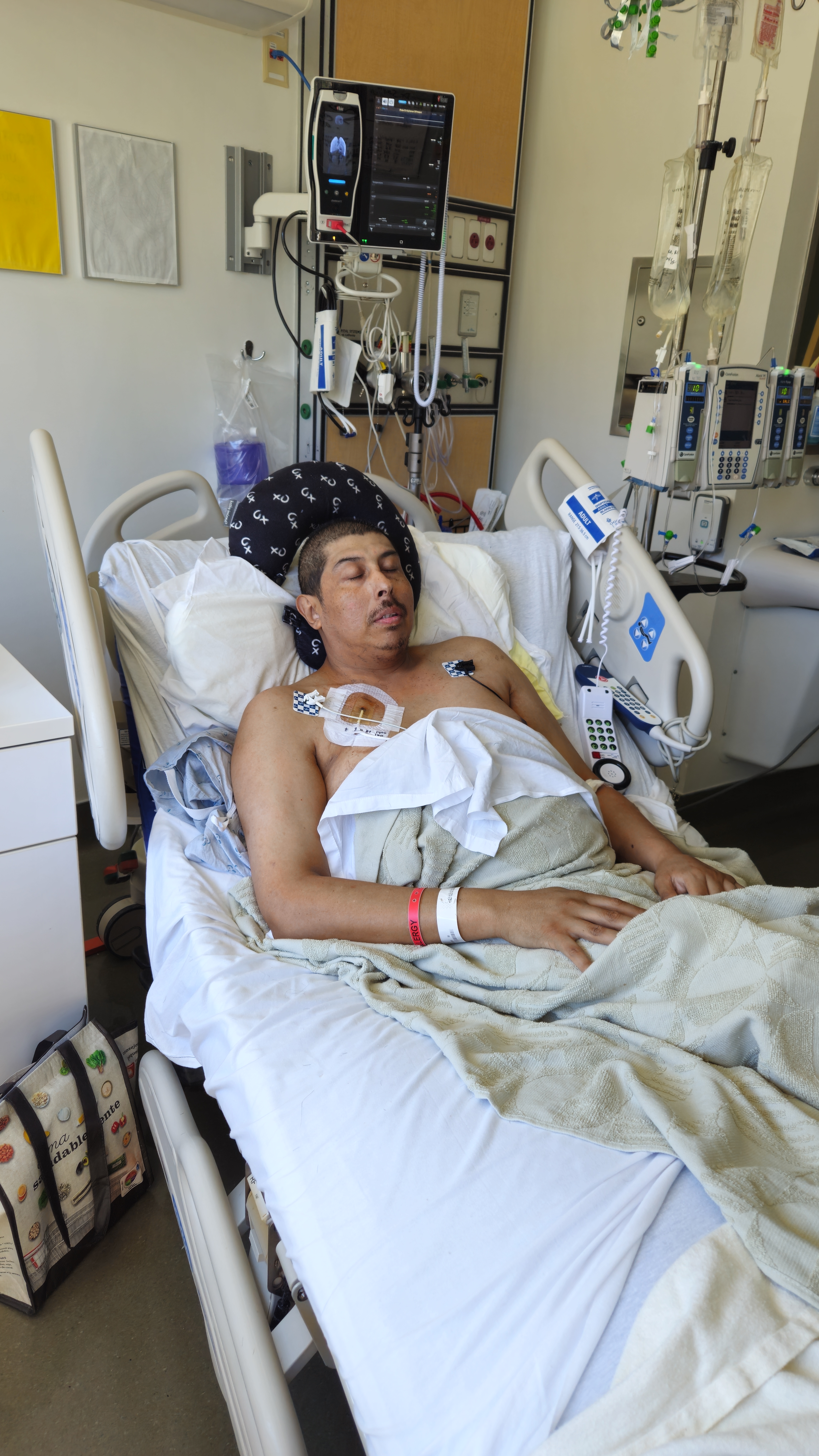 For the past ten days, at UCSF Hospital, Marco has been suffering, hanging onto life, and going in and out of consciousness. Only yesterday did he start feeling a bit better and have some strength to at least take a shower and eat an orange. Hopefully, within a month he will be discharged from the hospital. Right now he cannot have any visitors because he does not have an immune system that is strong enough to battle any sickness. Still, he sends his Love to all and thanks you for your spirit.