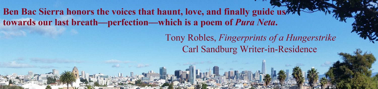 “As I beheld the stark images and pristine lyricism found in Pura Neta, it became clear that the words found between its pages had been penned by someone who had truly been about that life. Only someone who had lived it could have painted the characters with such 3-D precision. Taking its readers on a spiritual quest that ignores the conventions of time, Pura Neta is gutter, gangsta, and mystical all at the same time. In his arms, with such tenderness and respect, Bac Sierra cradles the souls and streets of the San Francisco Mission, embracing both the courage and fragility of the place he loves and its people. Like the late James Baldwin, Benjamin Bac Sierra is a witness who testifies with his pen. Pura Neta is his triumph and ours.”